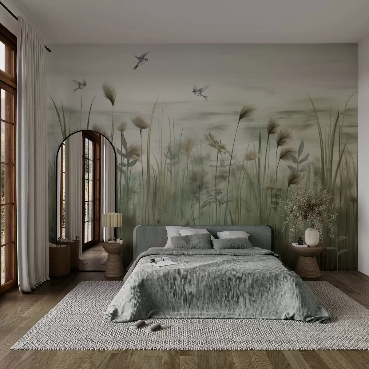 Light version of grass landscape with swallows - Wall mural (No. w04258)