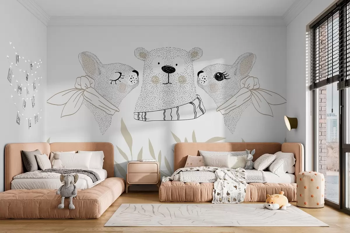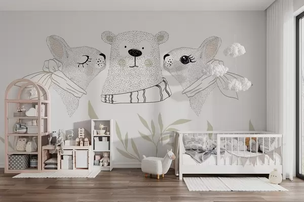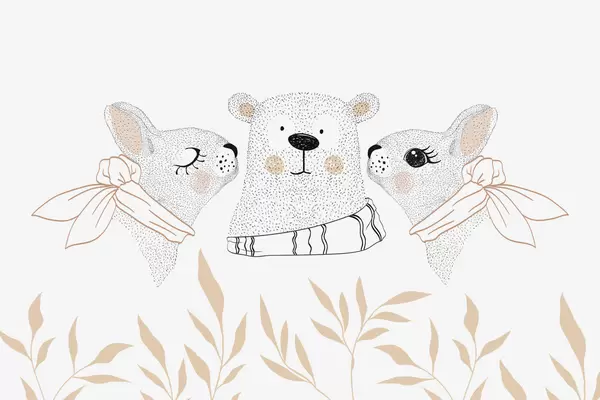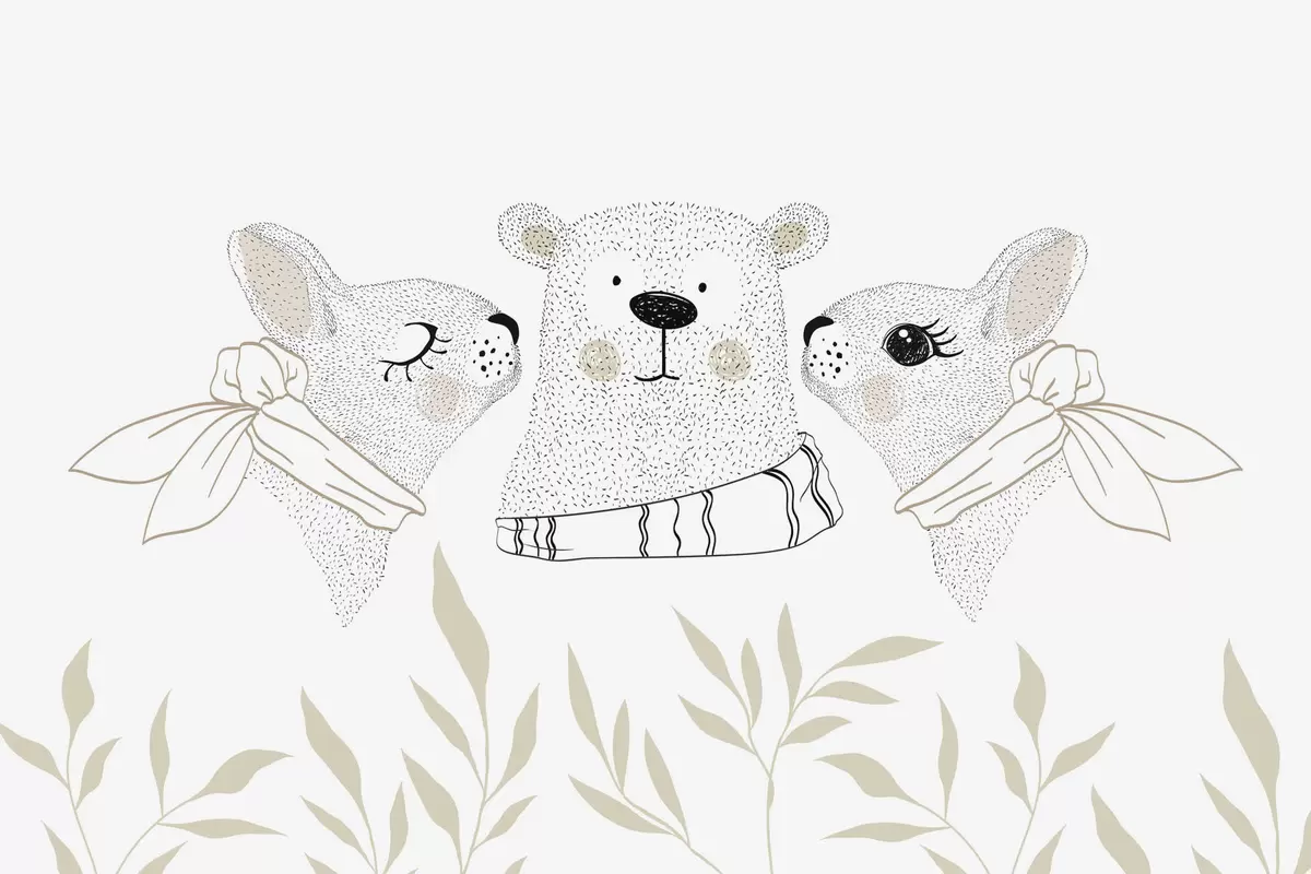 Funny animals, hares and a bear cub - Wall mural (No. w04269v1)