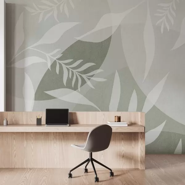 Silhouettes of twigs on a background of abstract circles, shades of green - Wall mural (No. w04270v2)