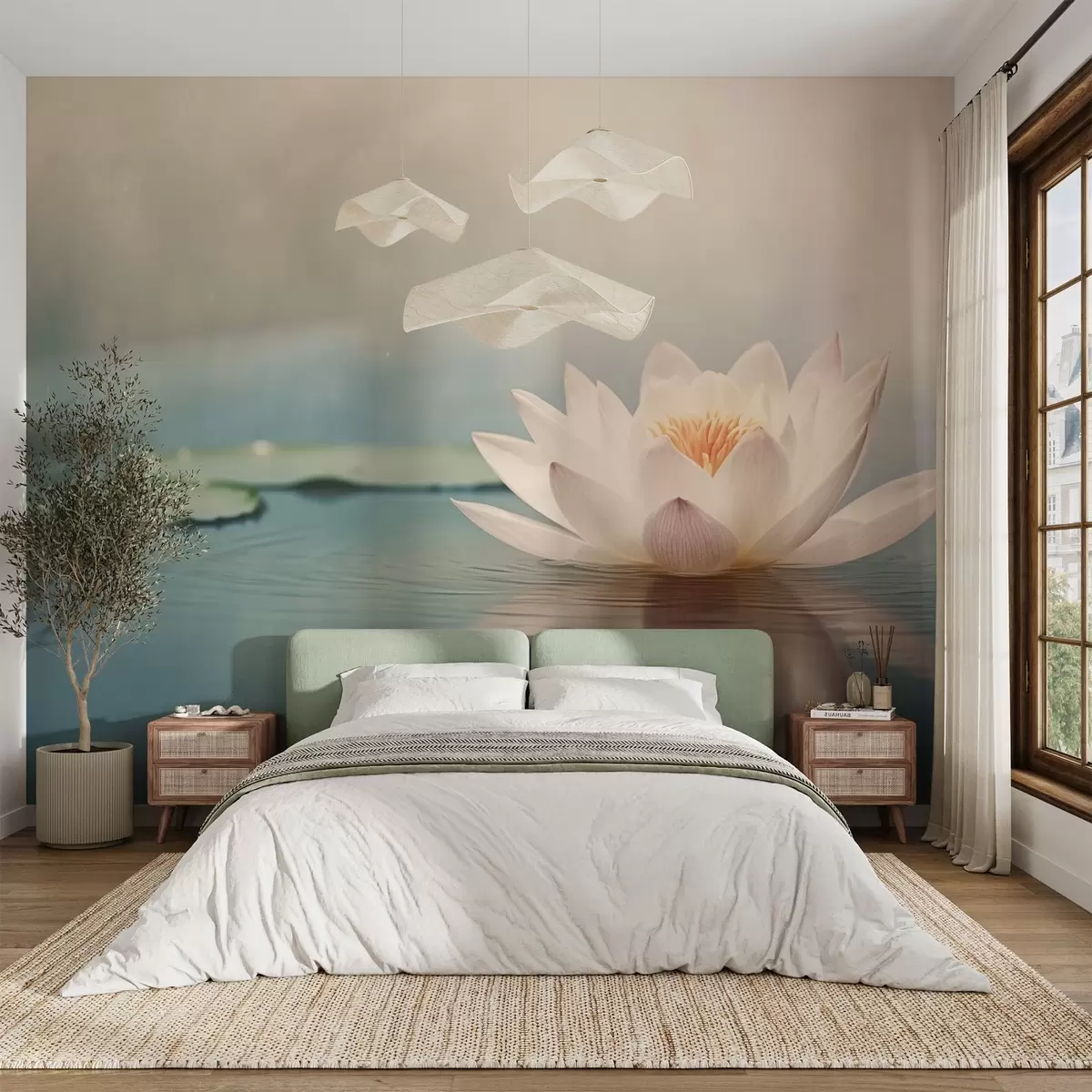 White lotus flower on the water - Wall mural (No. w04272)
