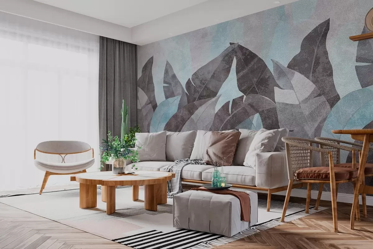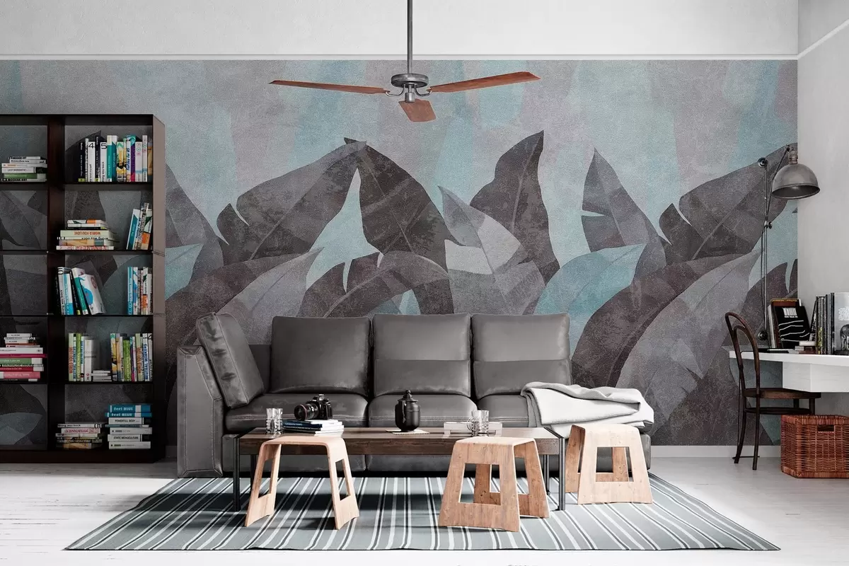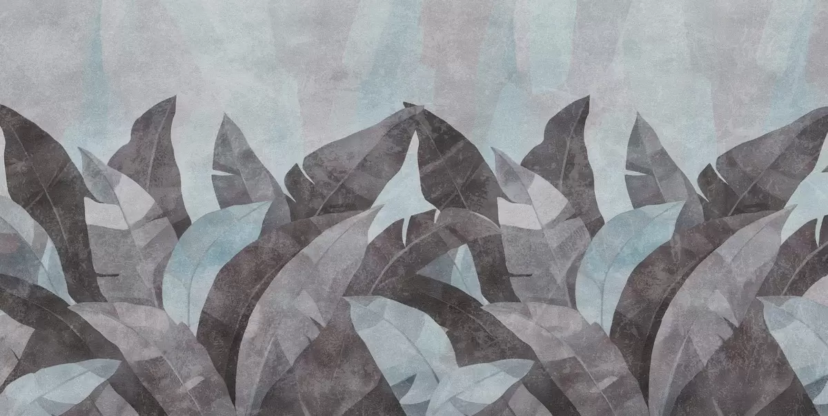 textured banana leaves in shades of blue and gray - Wall mural (No. w04285v2)