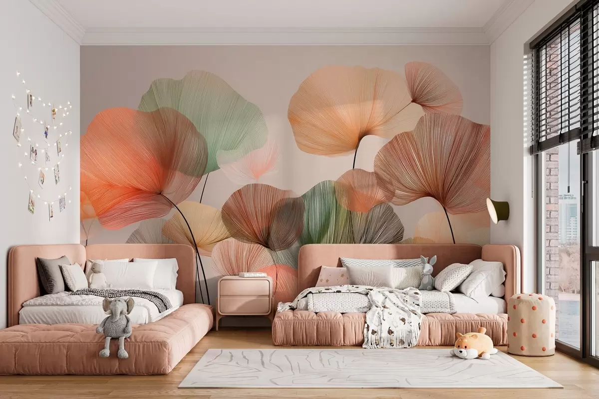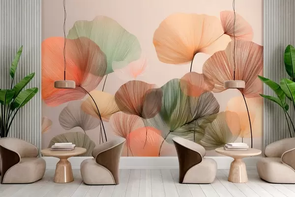multicolored ginkgo leaves with veins - Wall mural (No. w04305)