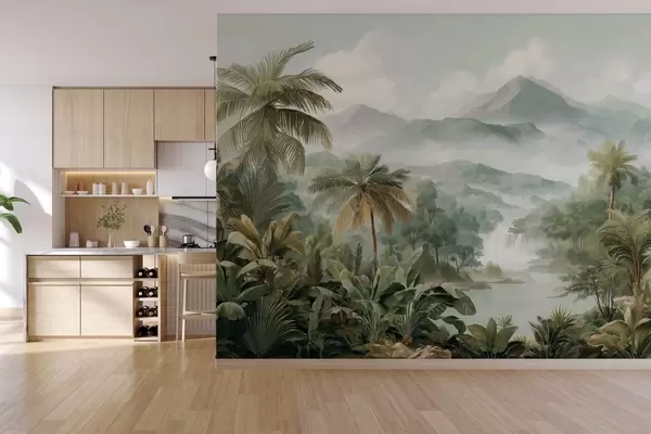 wall murals tropical jungle with waterfall w04306