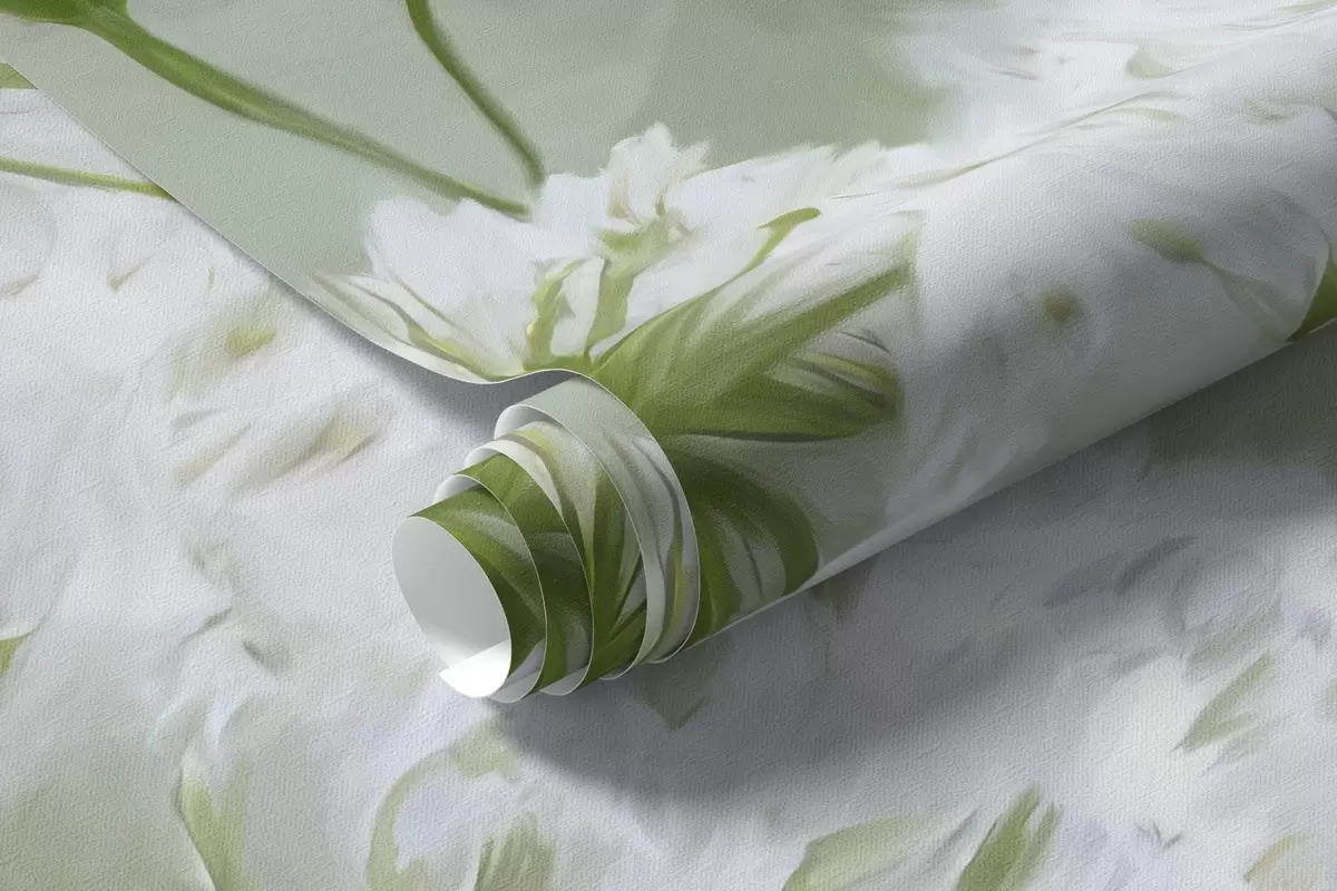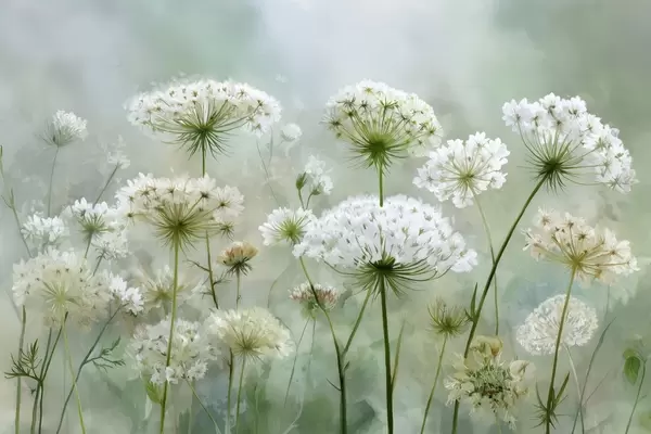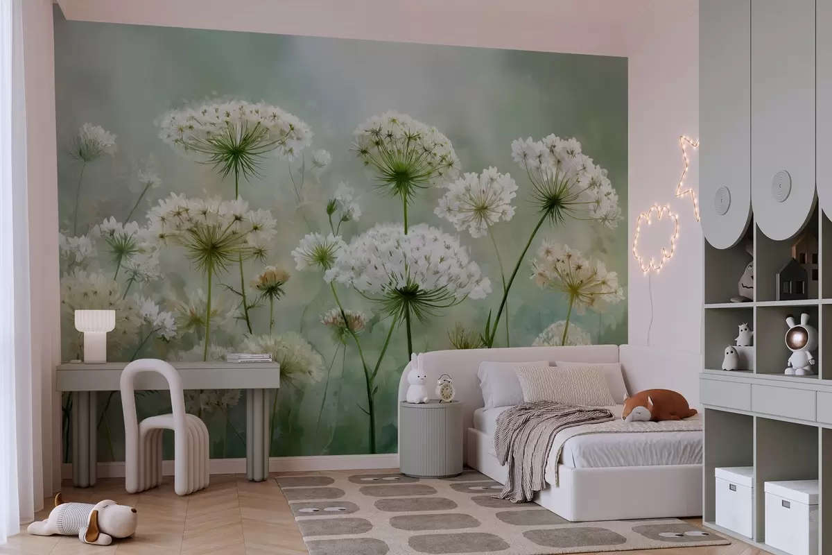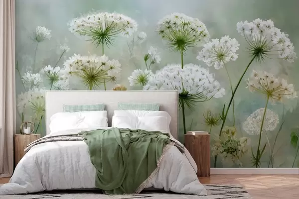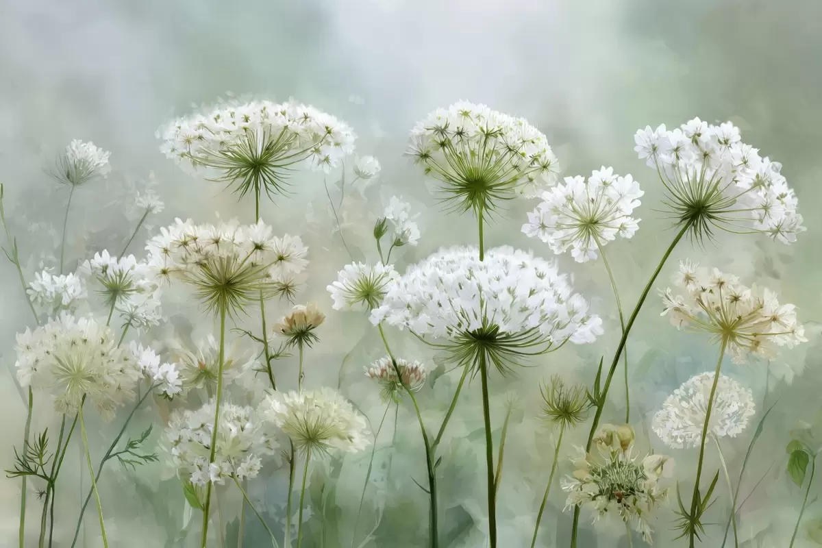 delicate white wildflowers Queen Anne, in a picturesque style, green tones - Wall mural (No. w04313)