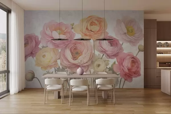 Vintage bouquet of ranunculus - Wall mural (No. w04326)