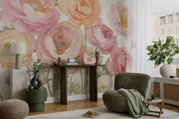 Vintage bouquet of ranunculus - Wall mural (No. w04326)