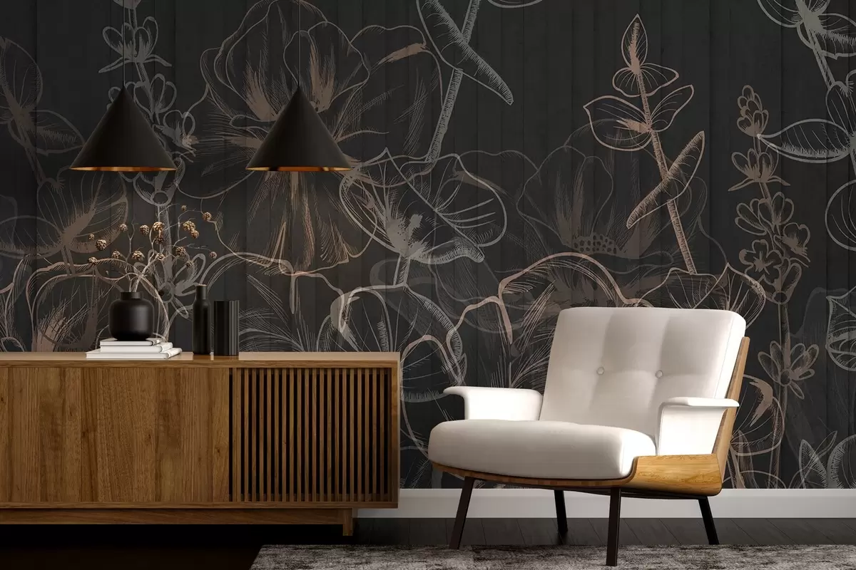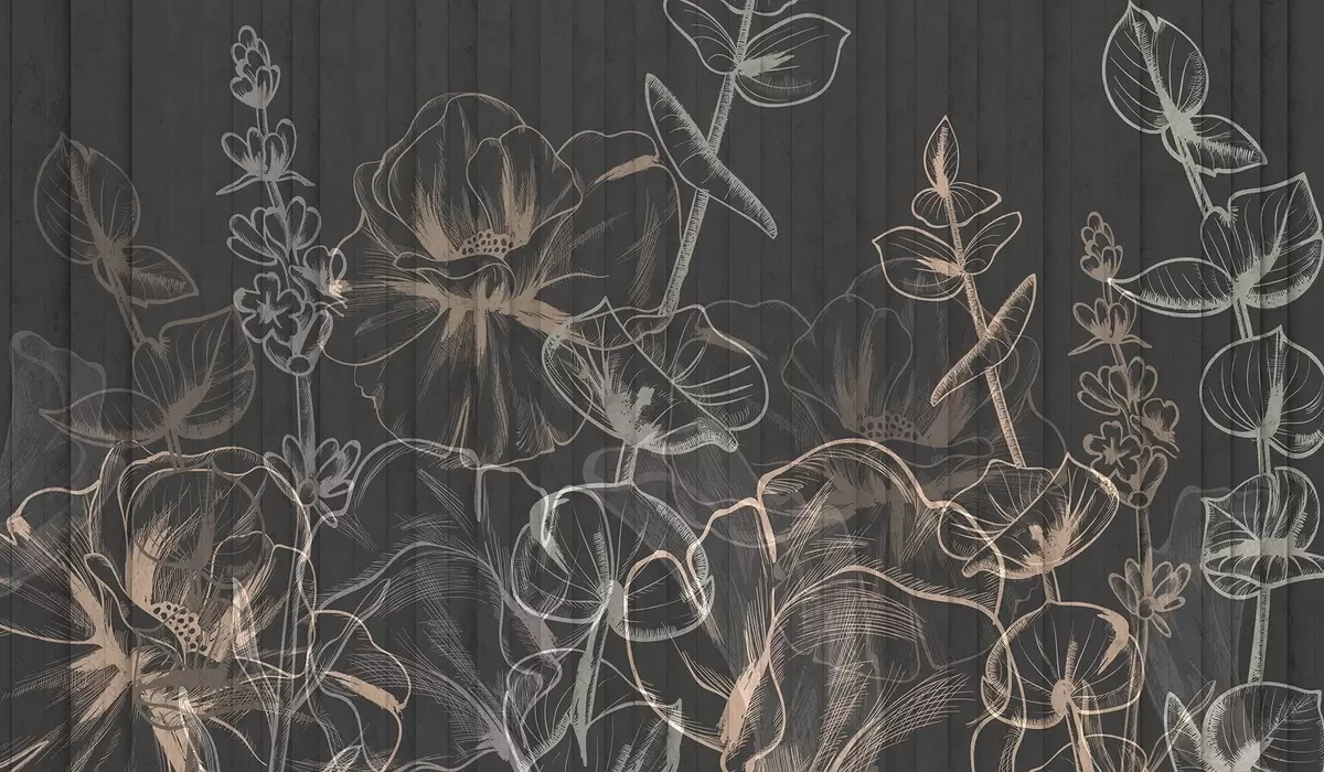 Plant silhouettes on a concrete background - Wall mural (No. w04327v2)