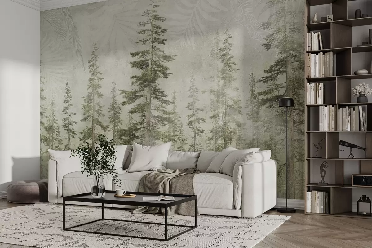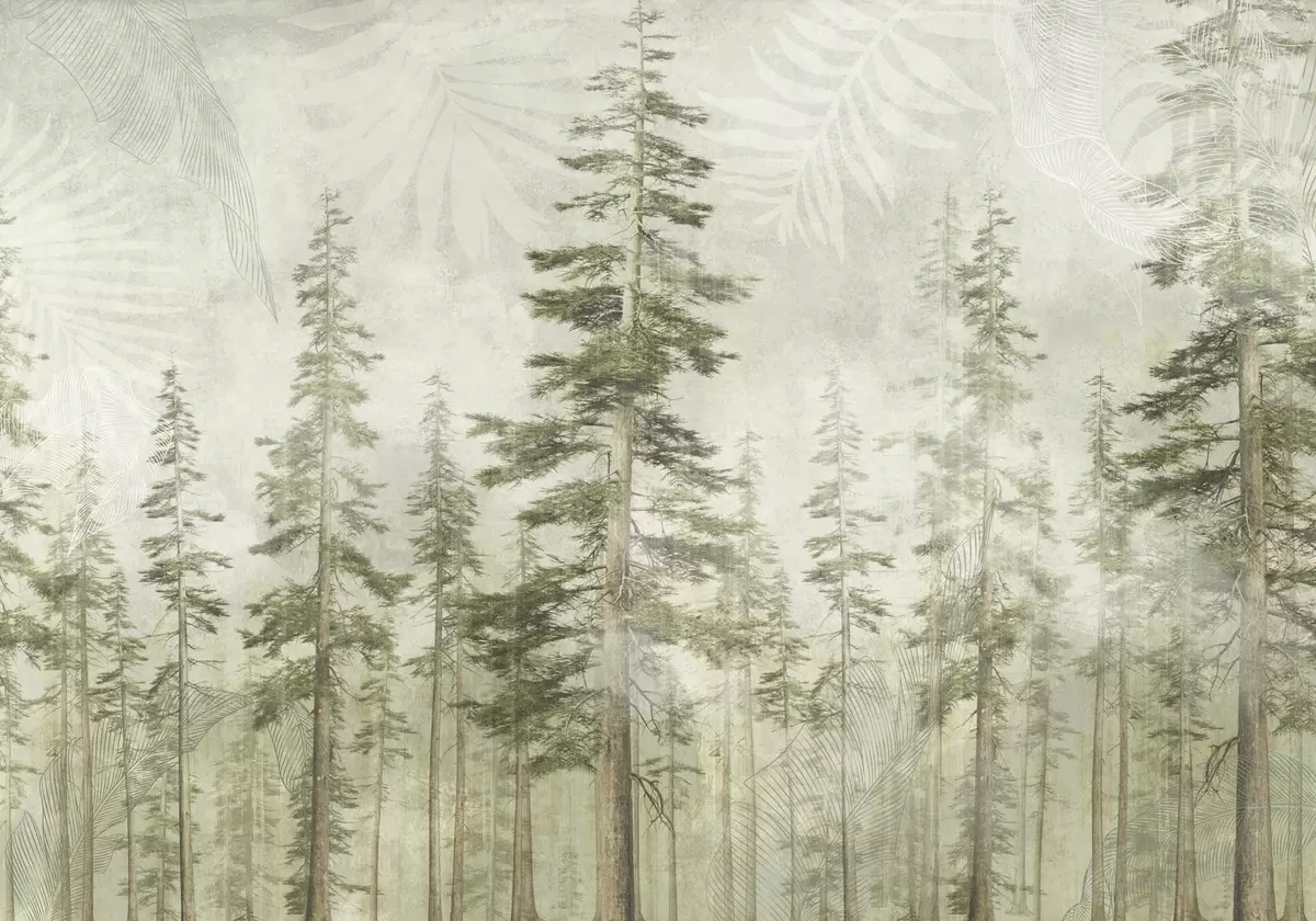 Pine forest with vintage paper texture and fine patterns - Wall mural (No. w04342)