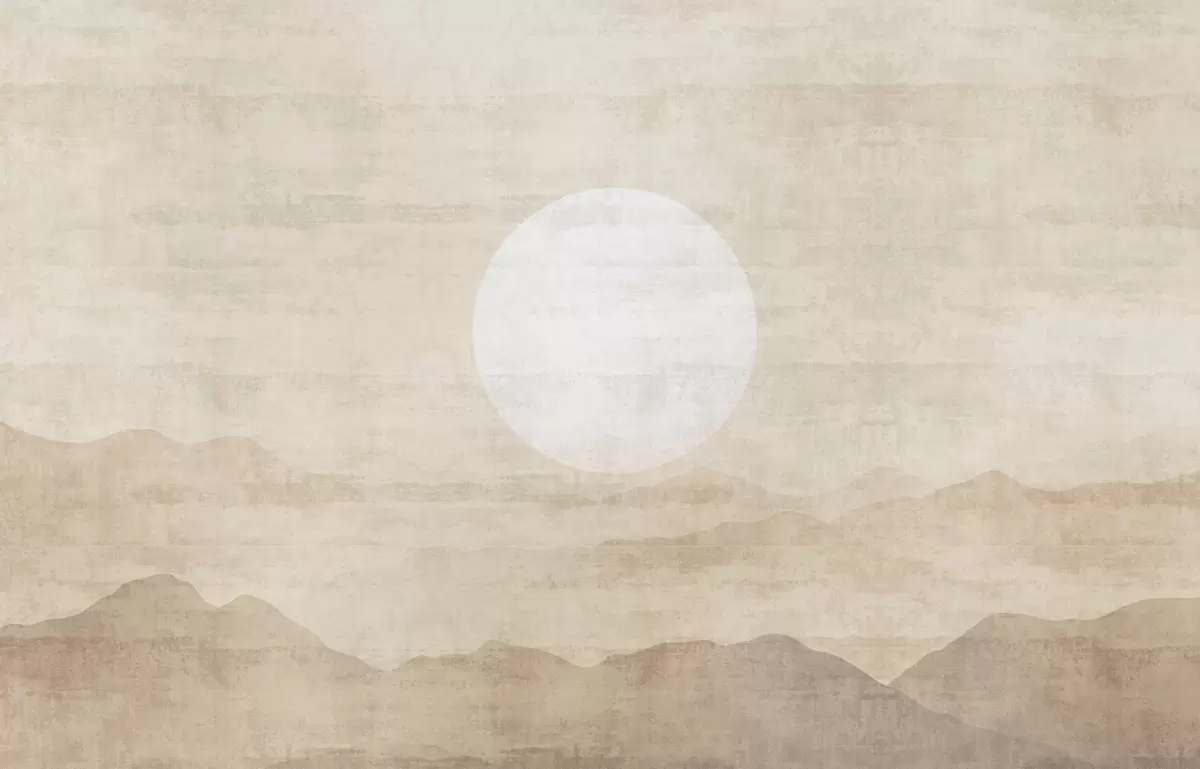 Minimalist mountain landscape with large white sun - Wall mural (No. w04345)
