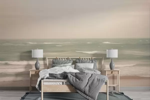 wall murals Soft pink-green seascape with gentle waves w04348