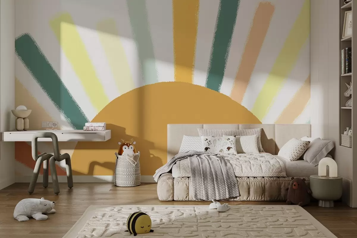 Abstract sun with colored rays - Wall mural (No. w04352)