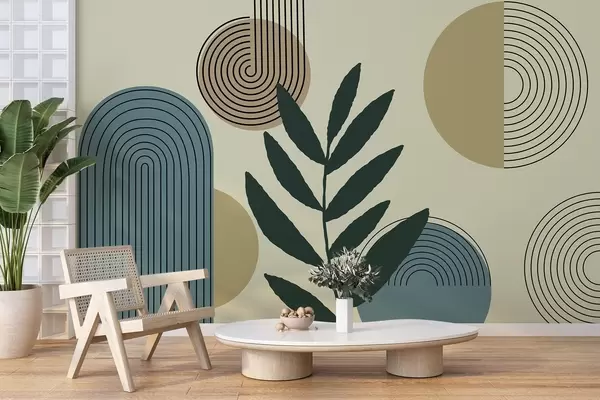 Geometric leaves - Wall mural (No. w04385v1)