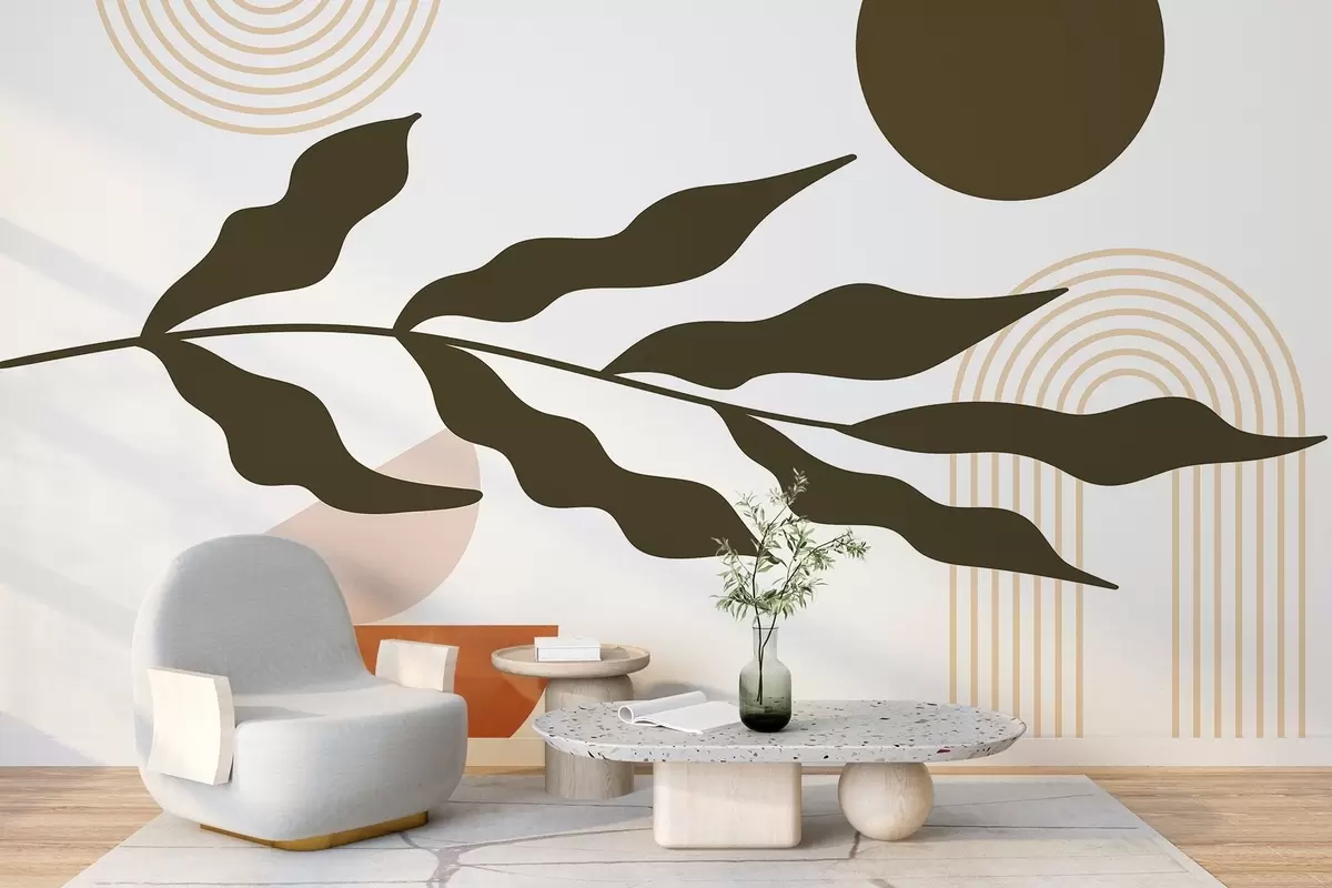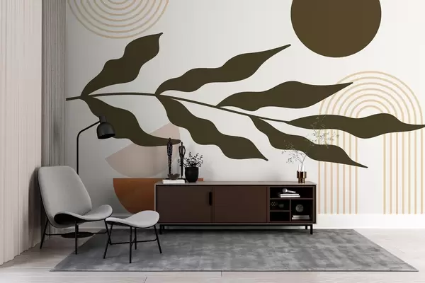 Abstraction, leaves, linear arches - Wall mural (No. w04386)