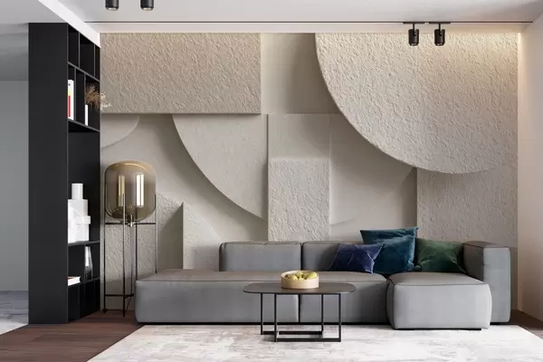 Abstract composition of beige geometric shapes - Wall mural (No. w04395)