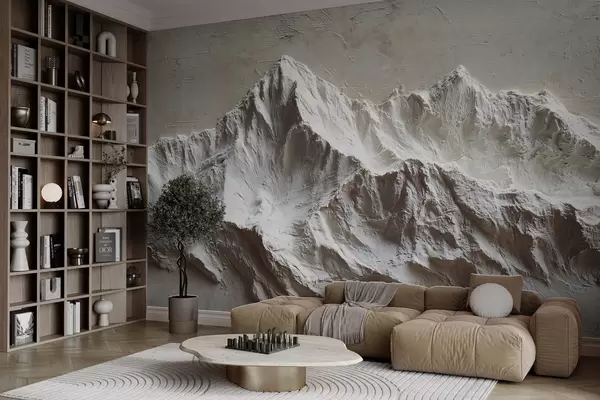 Embossed mountains in light tones with texture - Wall mural (No. w04396)