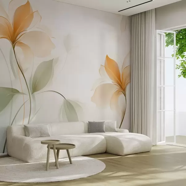 Transparent flowers with a rich orange center - Wall mural (No. w04397v1)