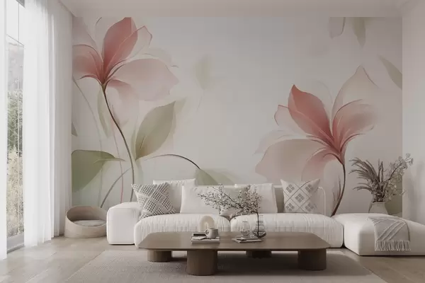 Transparent flowers in delicate pink and pastel shades - Wall mural (No. w04397v2)