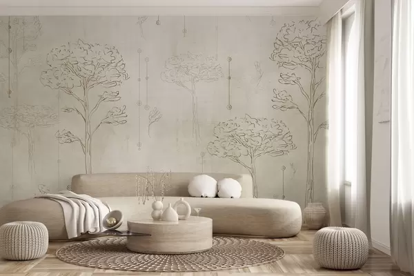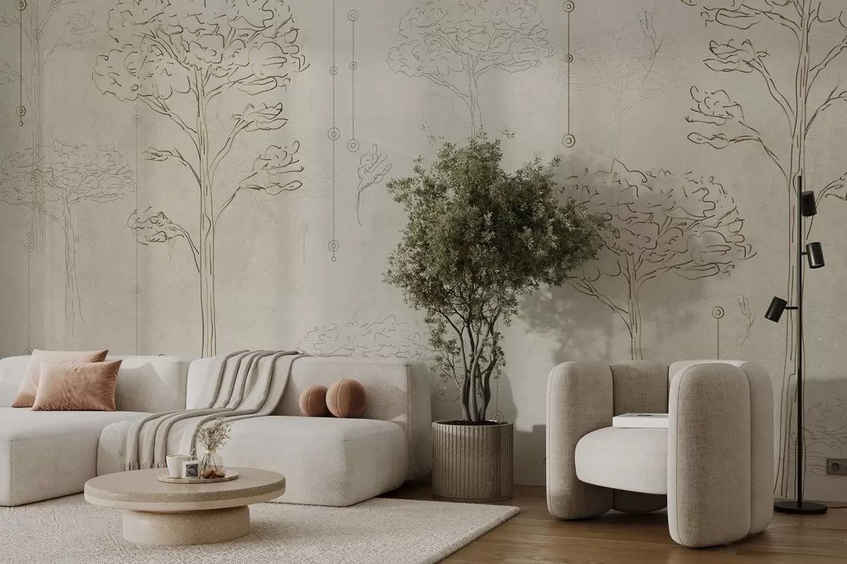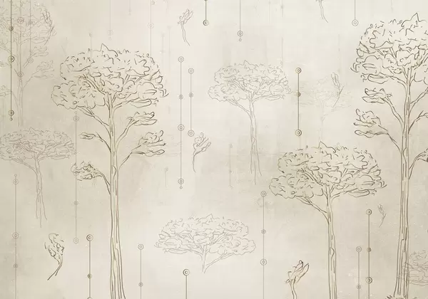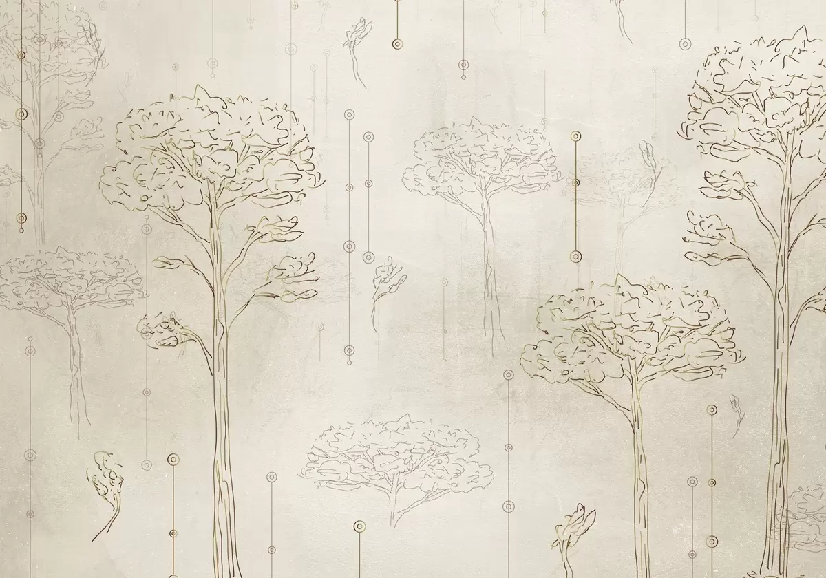Linear silhouettes of trees in minimalist style - Wall mural (No. w04403)