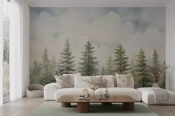 Coniferous forest imitation painting - Wall mural (No. w04414)