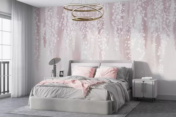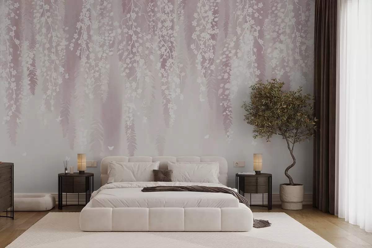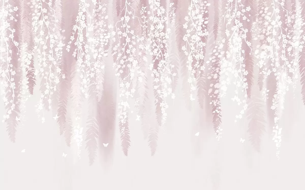 Pink version of branches with white flowers - Wall mural (No. w04417v1)