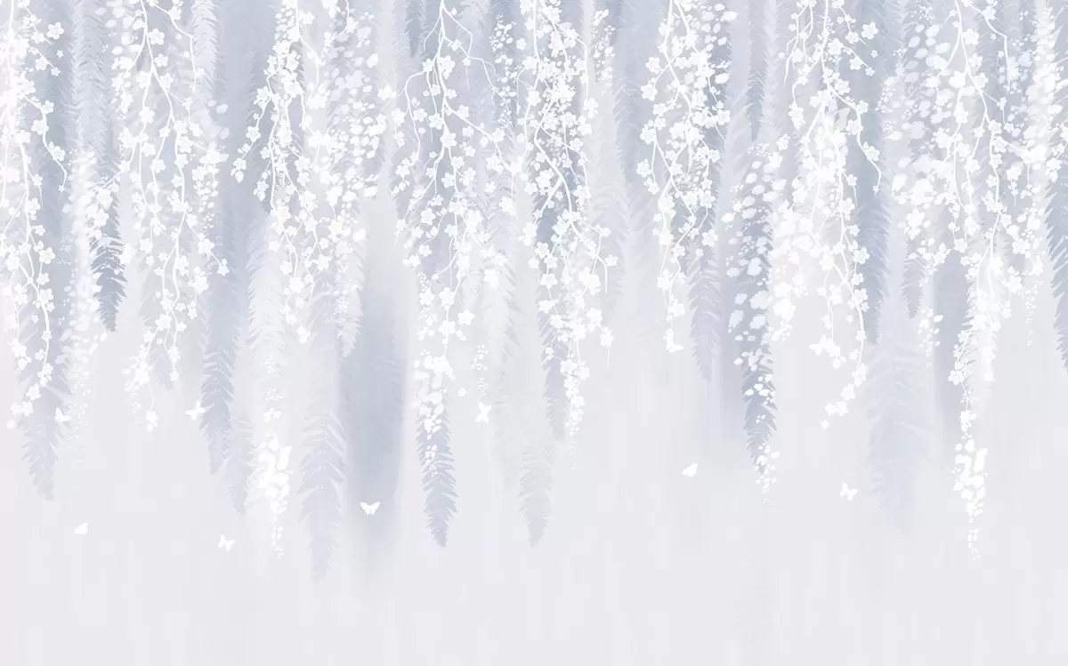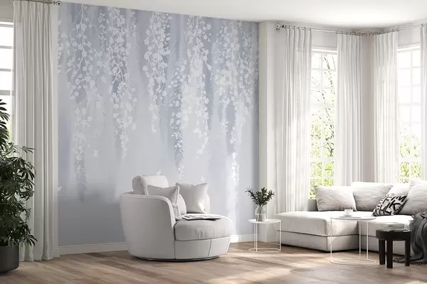 Cool blue version of branches with white flowers - Wall mural (No. w04417v2)