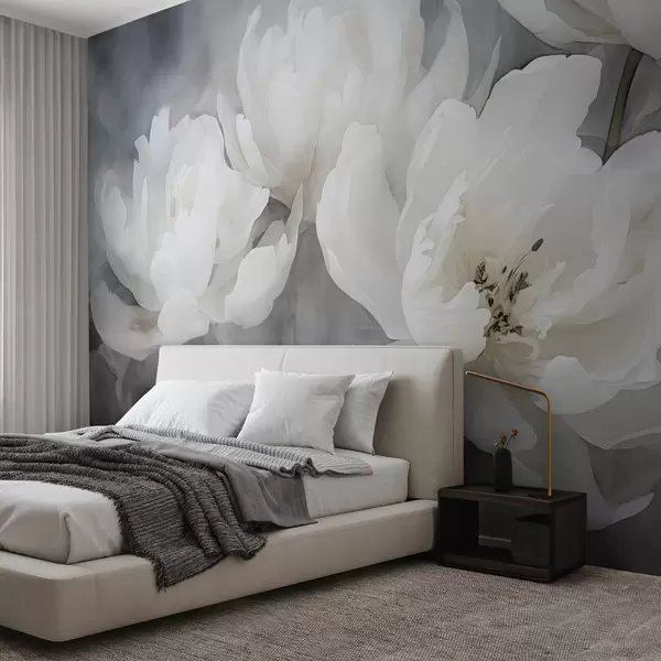 White flowers on a misty, delicate background - Wall mural (No. w04441)