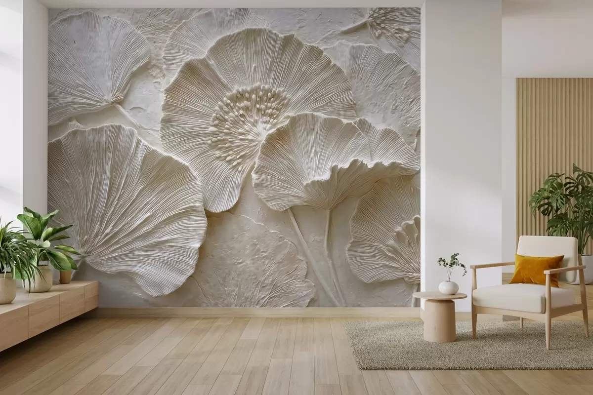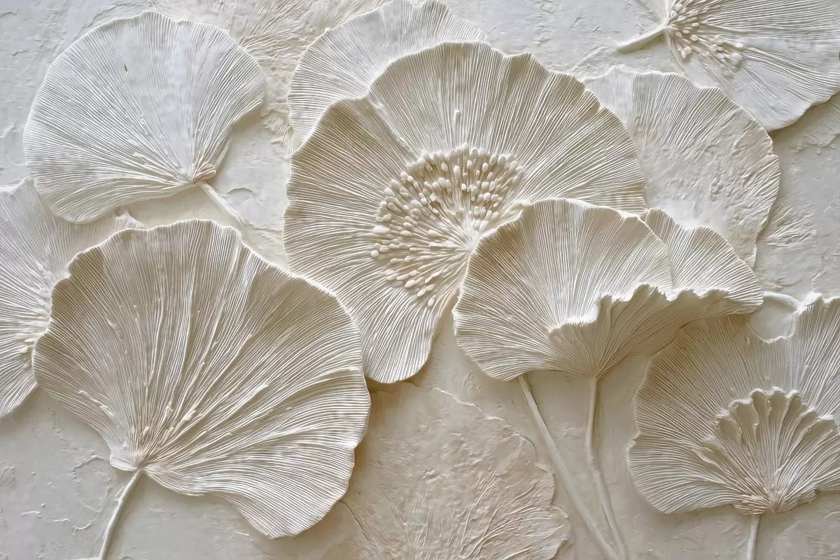 Voluminous ginkgo leaves in a light embossed style - Wall mural (No. w04444)