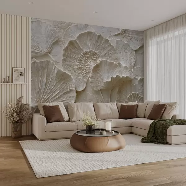 Voluminous ginkgo leaves in a light embossed style - Wall mural (No. w04444)