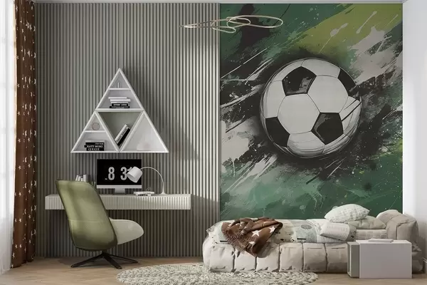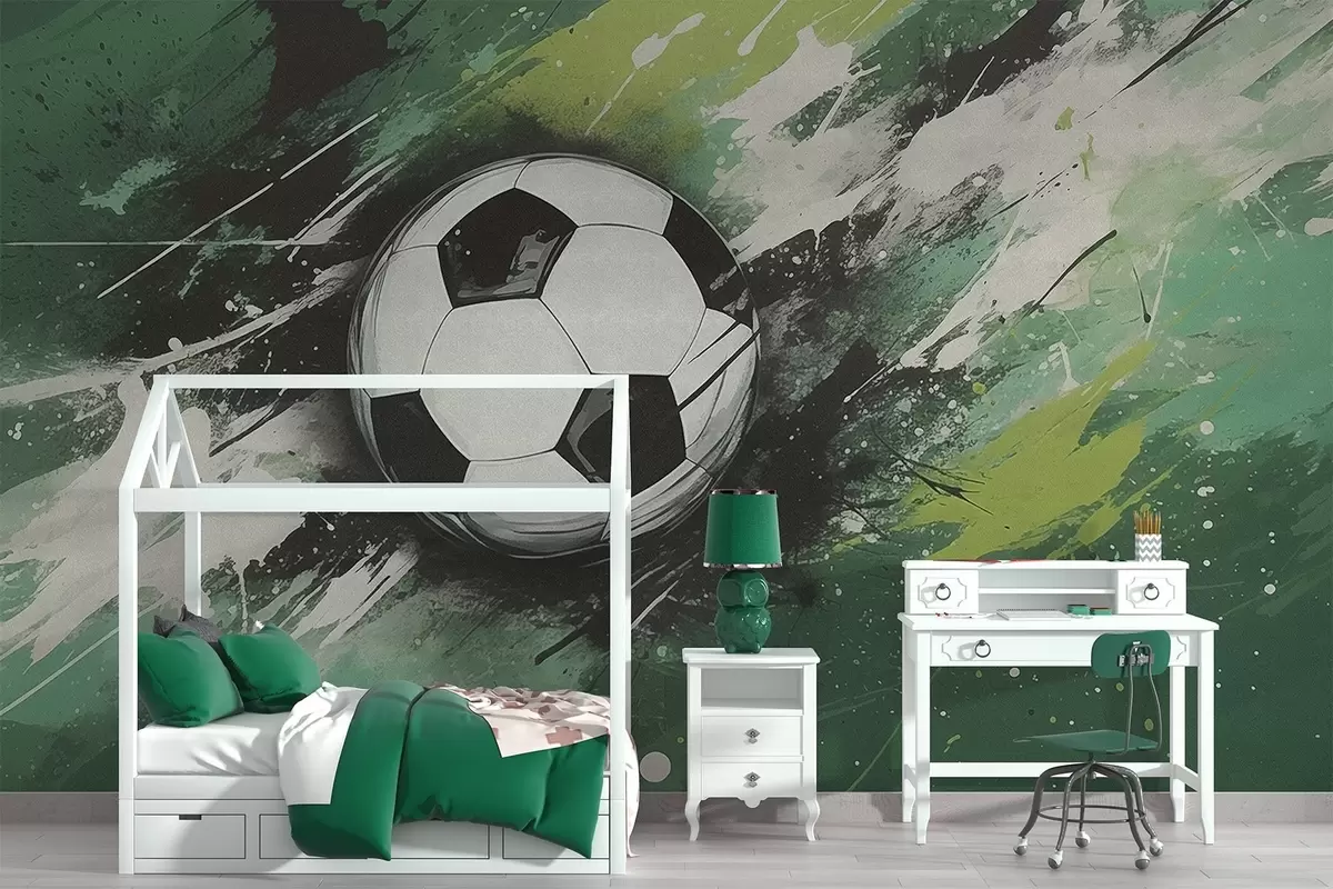 Soccer ball with blurred graffiti in the background - Wall mural (No. w04467)