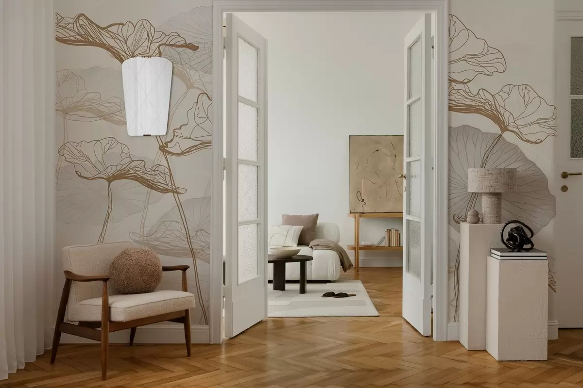Wipe gently with a soft sponge. Varnished wallpapers can be cleaned with water.