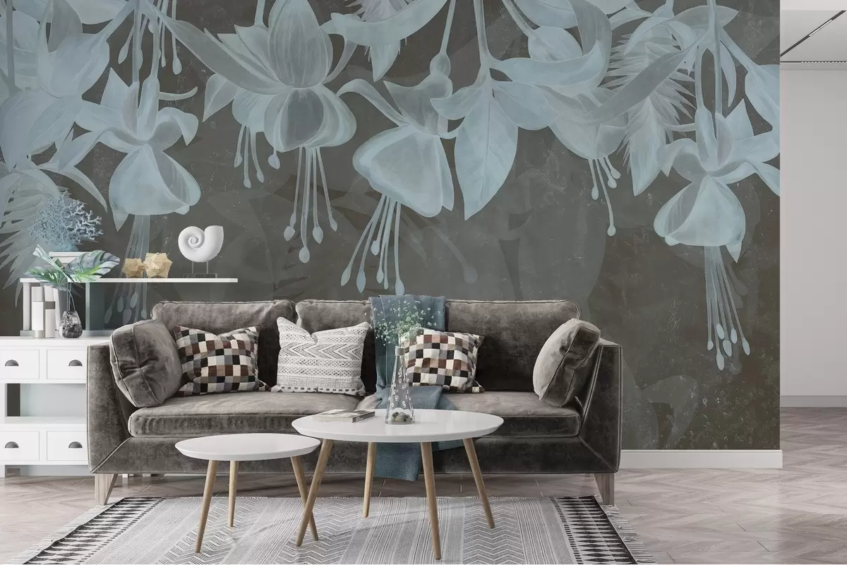 Hanging flowers in grunge style - Wall mural (No. w04472v3)
