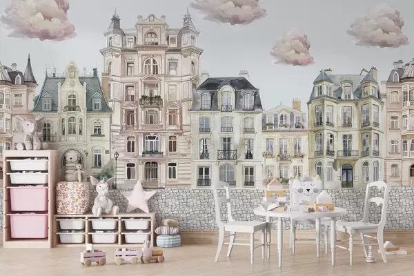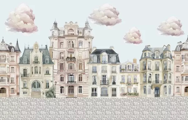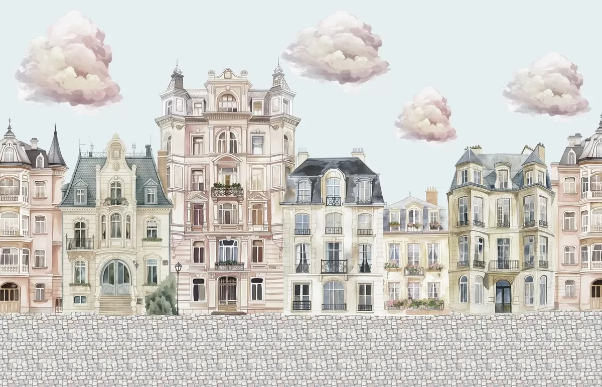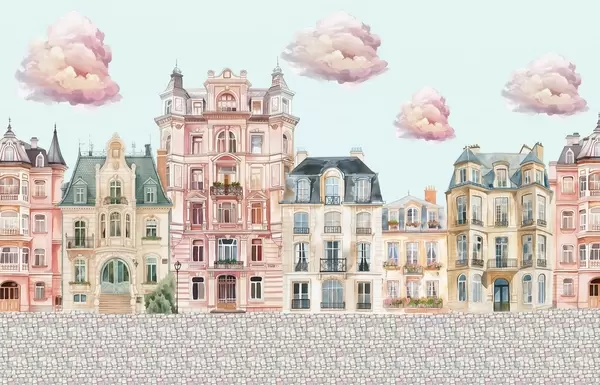Colourful houses, clouds - Wall mural (No. w04474v1)