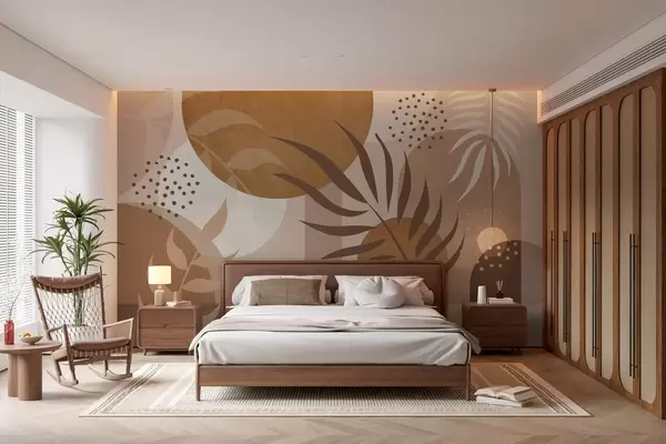 Contemporary abstraction with plants in brown and beige tones - Wall mural (No. w04497)