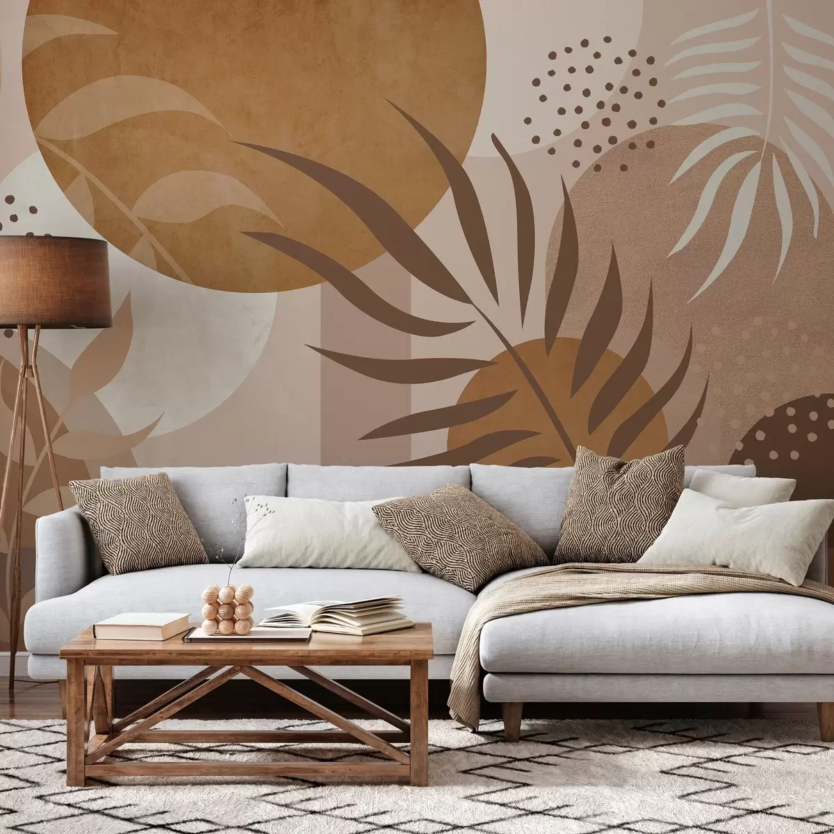 Contemporary abstraction with plants in brown and beige tones - Wall mural (No. w04497)