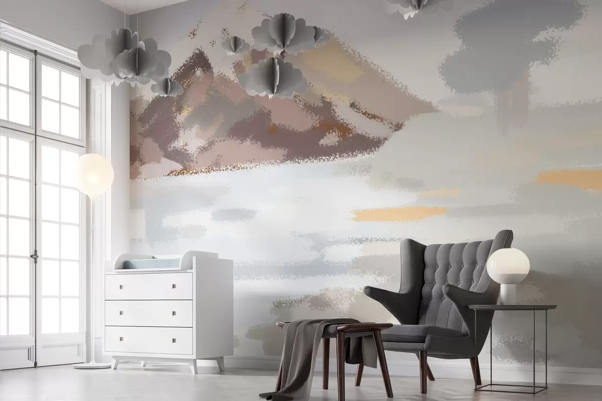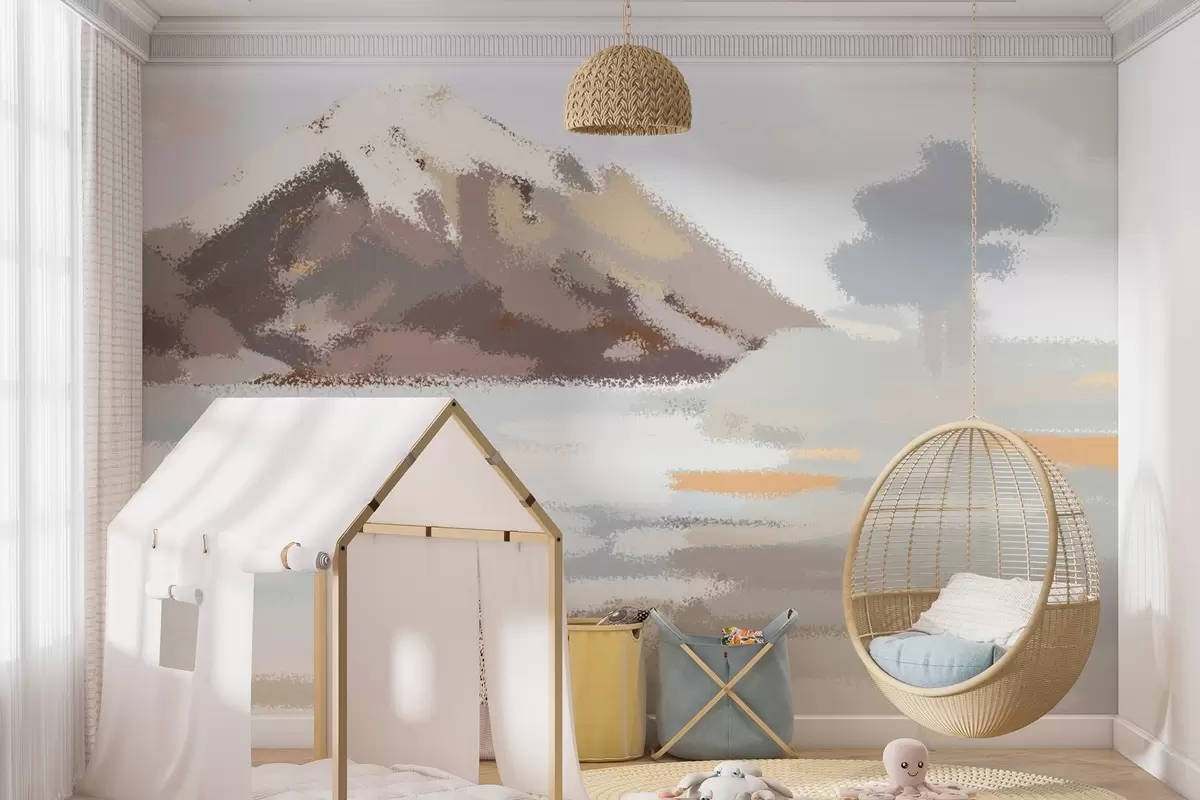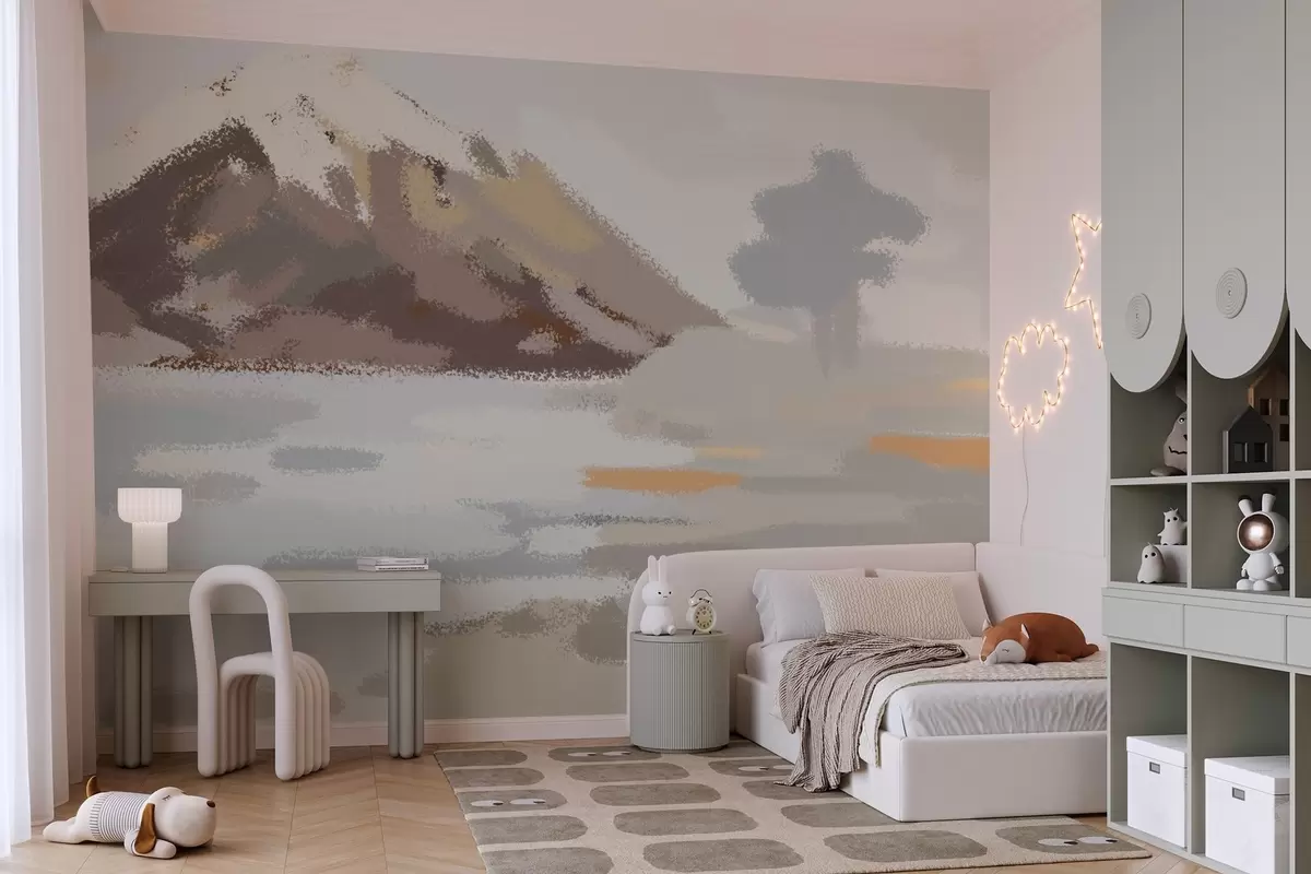 abstract landscape in the style of a child's drawing - Wall mural (No. w04498)