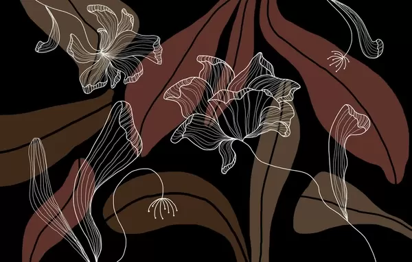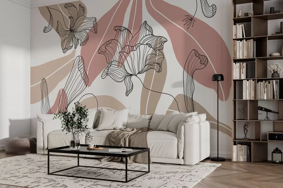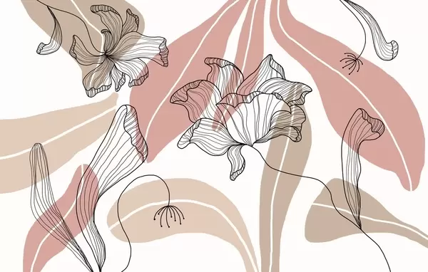 abstract leaves and flowers in powdery and beige tones - Wall mural (No. w04499)