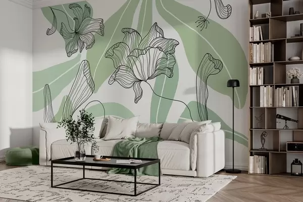 abstract leaves and flowers in green tones - Wall mural (No. w04499v1)