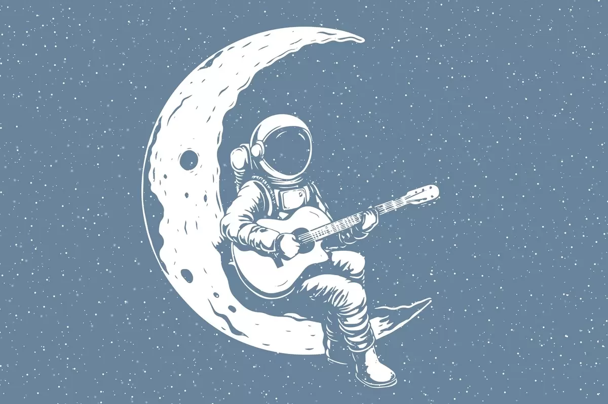 Cosmonaut, moon, guitar - Wall mural (No. w04514v2)