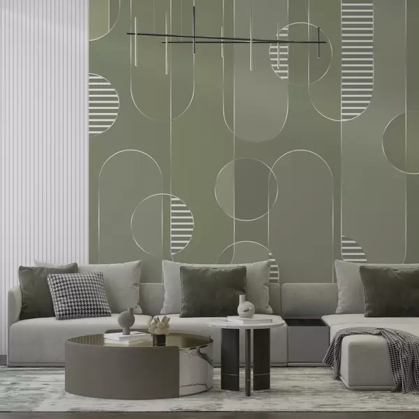 Geometric abstract with muted green tones - Wall mural (No. w04523)