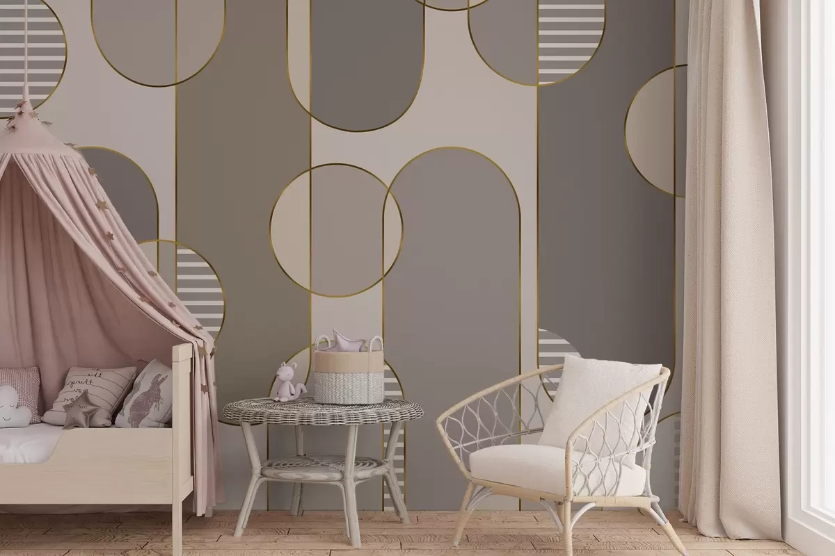 Geometric abstract with brown and lines - Wall mural (No. w04523v2)