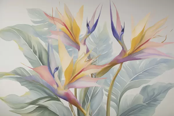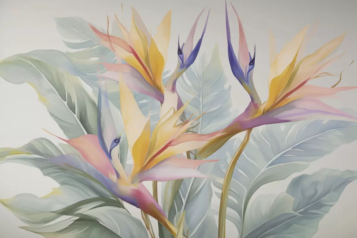 Strelitzia flowers and leaves - Wall mural (No. w04527)