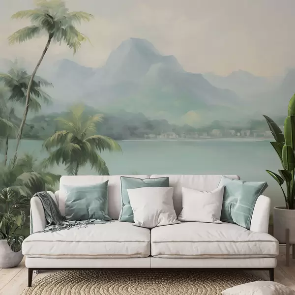 Palm trees against the backdrop of mountains - Wall mural (No. w04535)