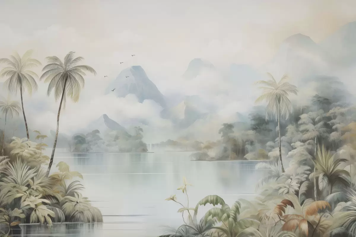 River in the jungle near the mountains - Wall mural (No. w04536)