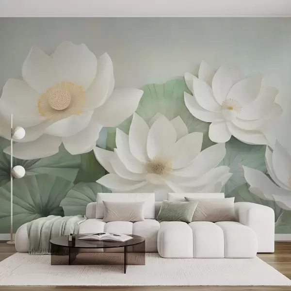 Lotus flowers in foliage - Wall mural (No. w04539)