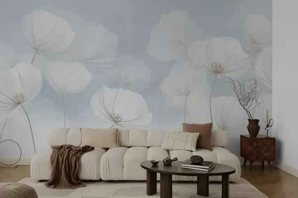 Airy white flowers on a blue background - Wall mural (No. w04580)