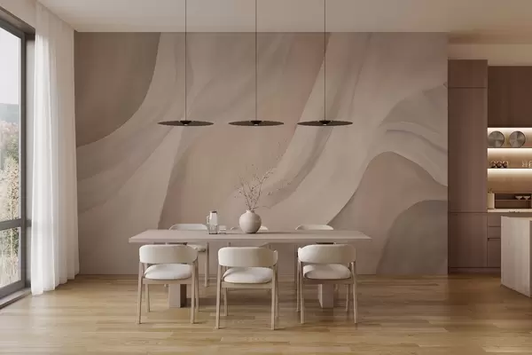 Beige-pink silky waves, soft flowing strokes - Wall mural (No. w04608)