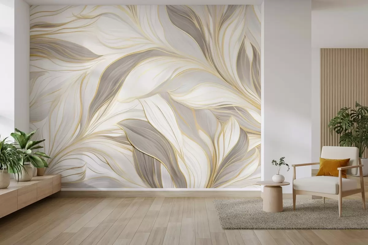 Leaves with smooth curves in light beige-gray tones - Wall mural (No. w04609)
