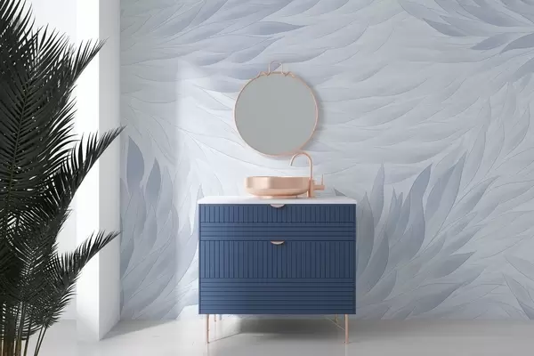 Wavy leaves in light blue tones - Wall mural (No. w04610v1)
