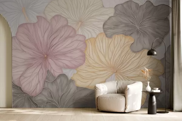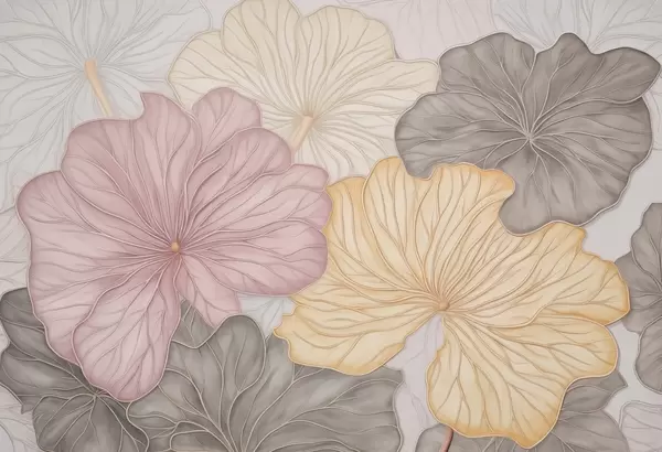 Large pastel leaves with fine veining - Wall mural (No. w04612)
