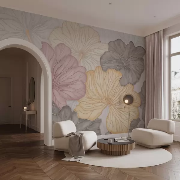 Large pastel leaves with fine veining - Wall mural (No. w04612)